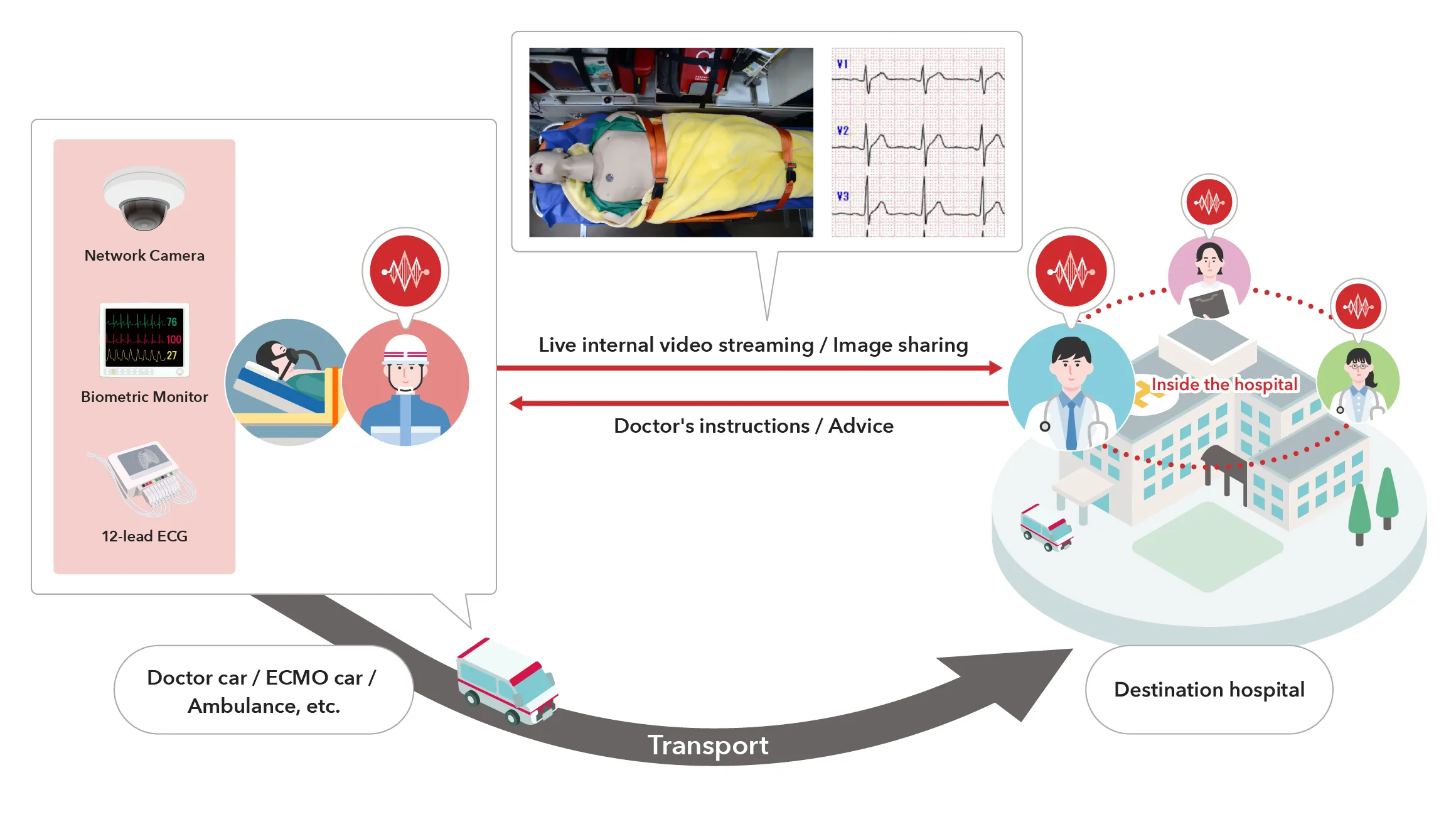 The system acquires images from cameras and monitor systems installed in doctor cars, ECMO
